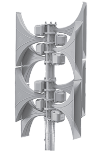 A corneta da sirene ECN é um específico desenvolvimento com aumento exponencial da superfície da seção transversal da corneta, para propagar alarmes e mensagens com alta intensidade sonora.